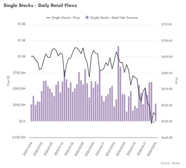 3月以来好意思股散户参与度执续回落,尽管周二重回买入,但温雅降温信号明确,重迭武艺化去杠杆、机构买盘乏力,商场踏实性显耀承压。