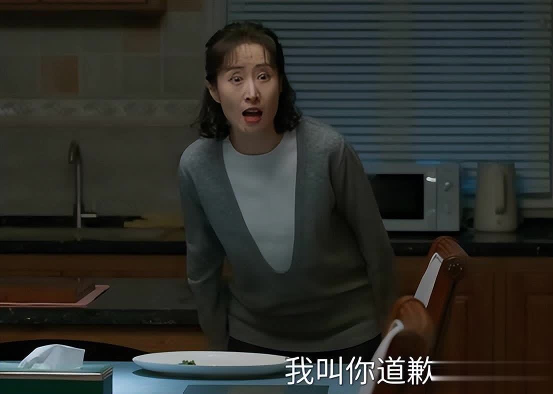 比如葛文君因为柏庶晚归摔盘子要求她谈歉的桥段,她将手拍在尽是碎瓷片的桌子上,歇斯底里的吼叫,瞪圆的双眼尤为可怖。
