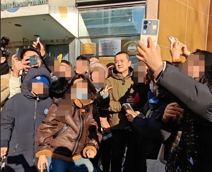 目送陈光标离开后,李亚鹏回身复返病院,死后许多东谈主举入辖下手机拍摄。可能因为天气风凉,他拽了拽帽子。在行将走进病院大门的时候,看到有小孩念念要合影,李亚鹏趁势把孩子搂在身边配合拍照,随后又与现场许多东谈主合影。