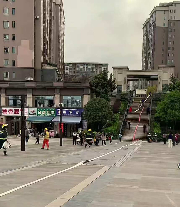 3月16日,网友发视频,重庆协信天骄溪悦小区着火,消防东说念主员携水带等用具爬台阶参预小区救火,画面露馅台阶有一定高度。