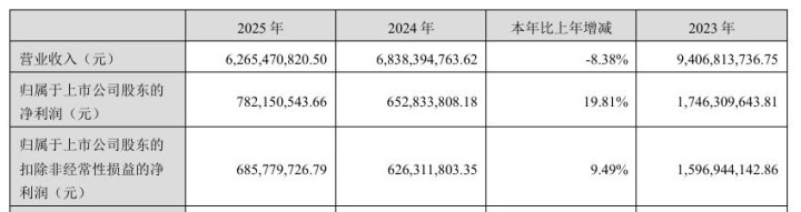 汤臣倍健袒露的2025年年报显现,公司2025年竣事贸易收入62.65亿元,同比下跌8.38%,集结第二年出现收入限制下跌,但归母净利润同比增长19.81%至7.82亿元。