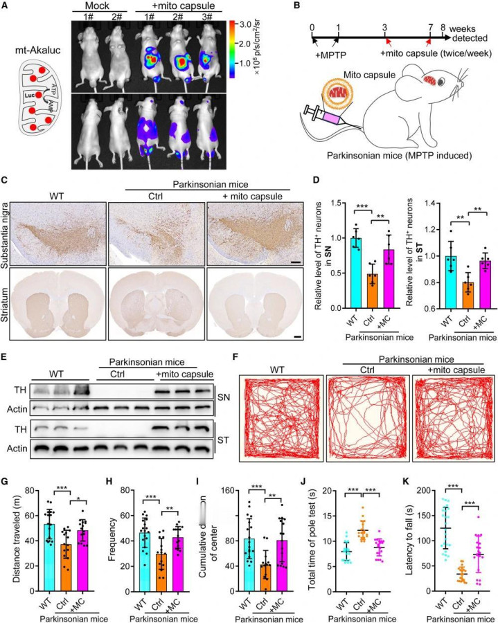 在帕金森病小鼠模子中,将线粒体胶囊寄递至病变脑区后,灵验羁系了神经元的握续亏空,复原了脑区线粒体的通俗功能,并权臣改善了模子小鼠的剖判能力,险些复原至通俗水平。