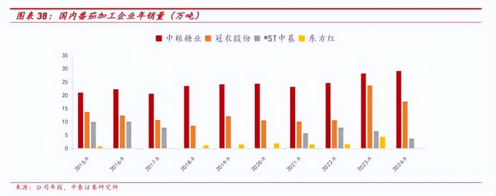 从数据上看,番茄丁这一品类近几年保抓增长,从2019年的1.7万吨升迁至2024年的约4万吨,诠释部分使用场景运行被清楚联络。