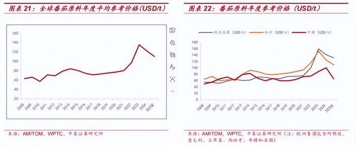 据中泰证券数据,限制客岁4月,番茄酱出口价钱从2023年底的峰值跌去近五成。国内库存积压创近十年新高,一批中小加工企业不得已退出商场。