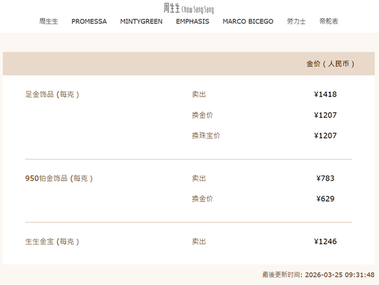 受此影响,国里面分品牌金饰价钱也随之上调,克价重回1400元。周生生足金饰品报1418元/克,单日高涨68元;老凤祥报价1408/克,单日高涨63元/克。