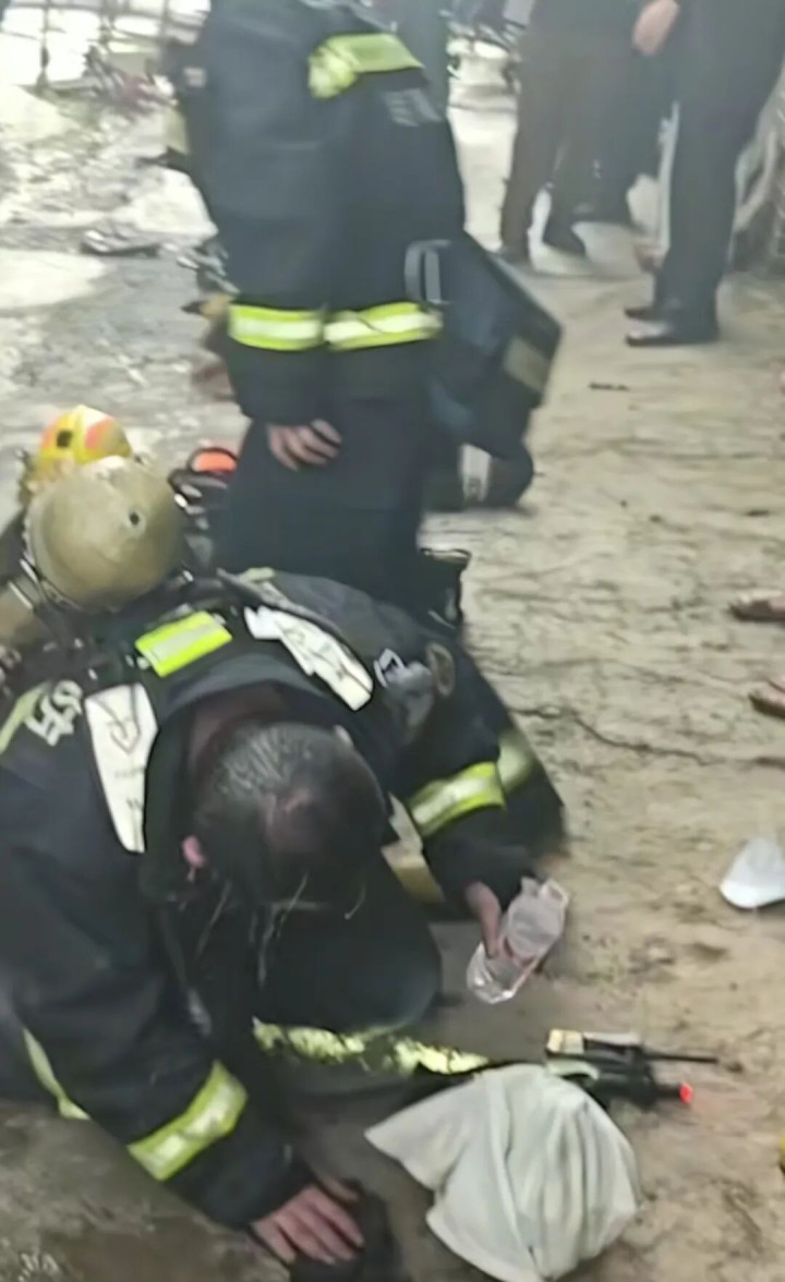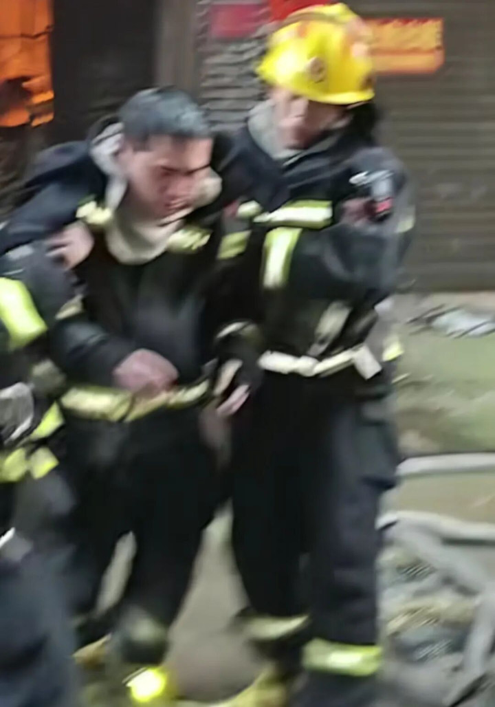 与此同期,潜入里面的消防员,在能见度真实为零的浓烟中一寸寸摸索。终于,在三楼卫生间,找到了已眩晕的须眉。