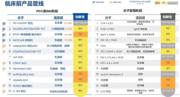 2025年研发参加25亿元,在重生代调动药企(不包括传统Big pharma)中仅次于百济神州。公共化大药云集,不仅有PD-1单抗H药、PD-L1 ADC HLX43、HER2单抗HLX22、EGFR单抗HLX07,还有喷薄而出的超20款早研新分子,以FIC/BIC为主。